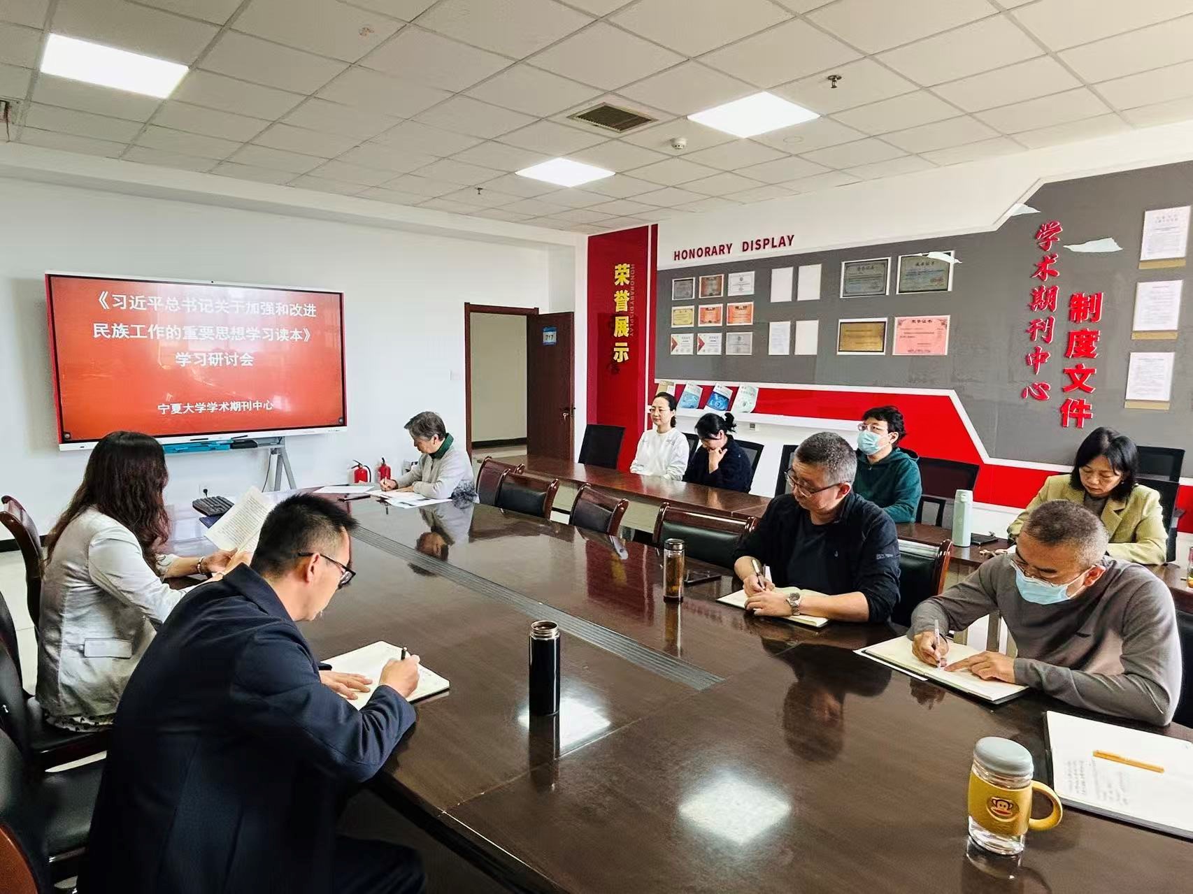 近日,学术期刊中心开展《习近平总书记关于加强和改进民族工作的重要思想学习读本》(以下简称《读本》)学习研讨。会议由中心书记、主任奥海玮主持,中心全体工作人员参会学习。