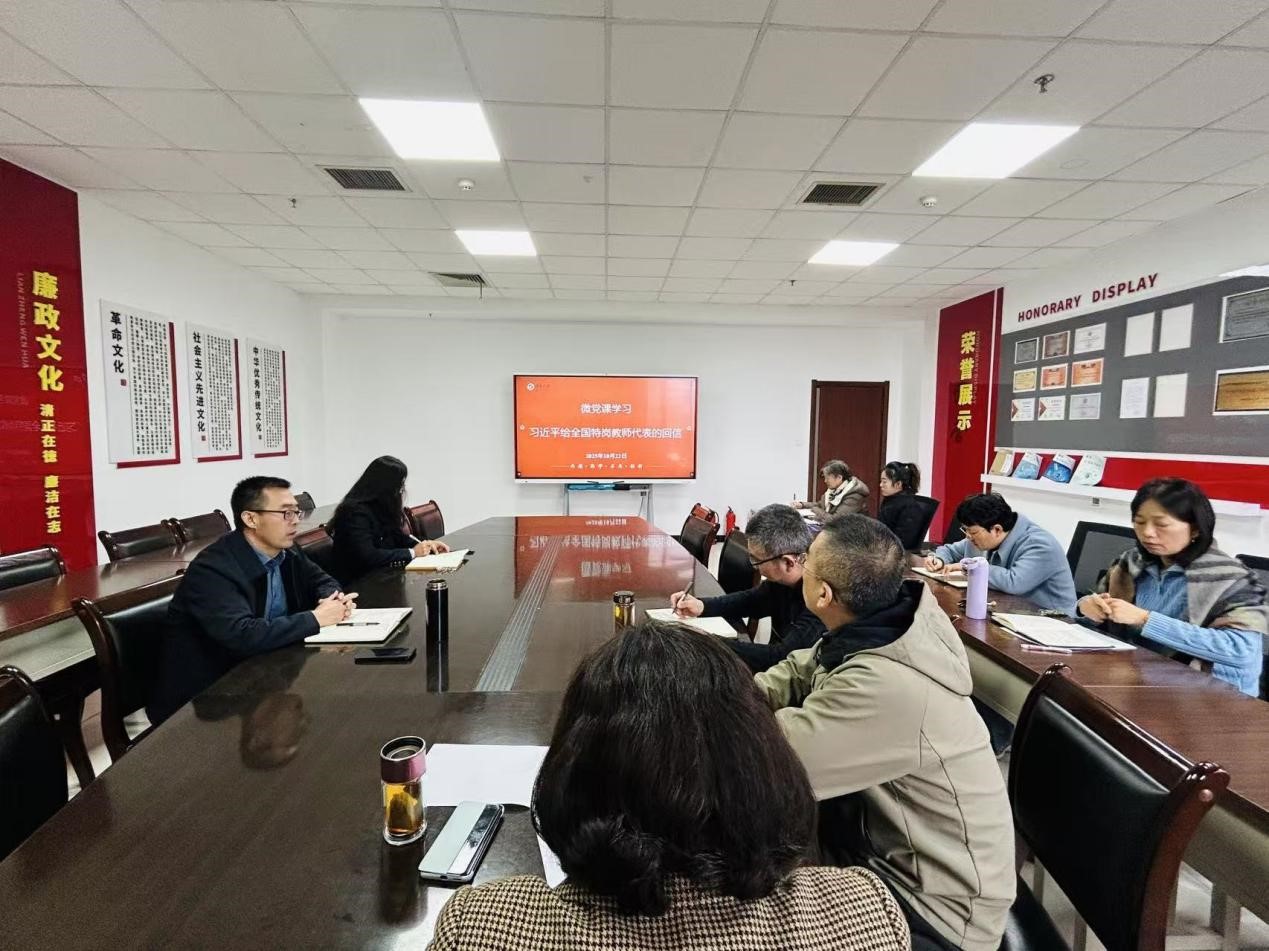 10月22日,人文社会科学版编辑王涛围绕“牢记嘱托 立德树人——深入学习习近平总书记给全国特岗教师代表的重要回信精神”主题讲微党课。中心全体人员参会学习。