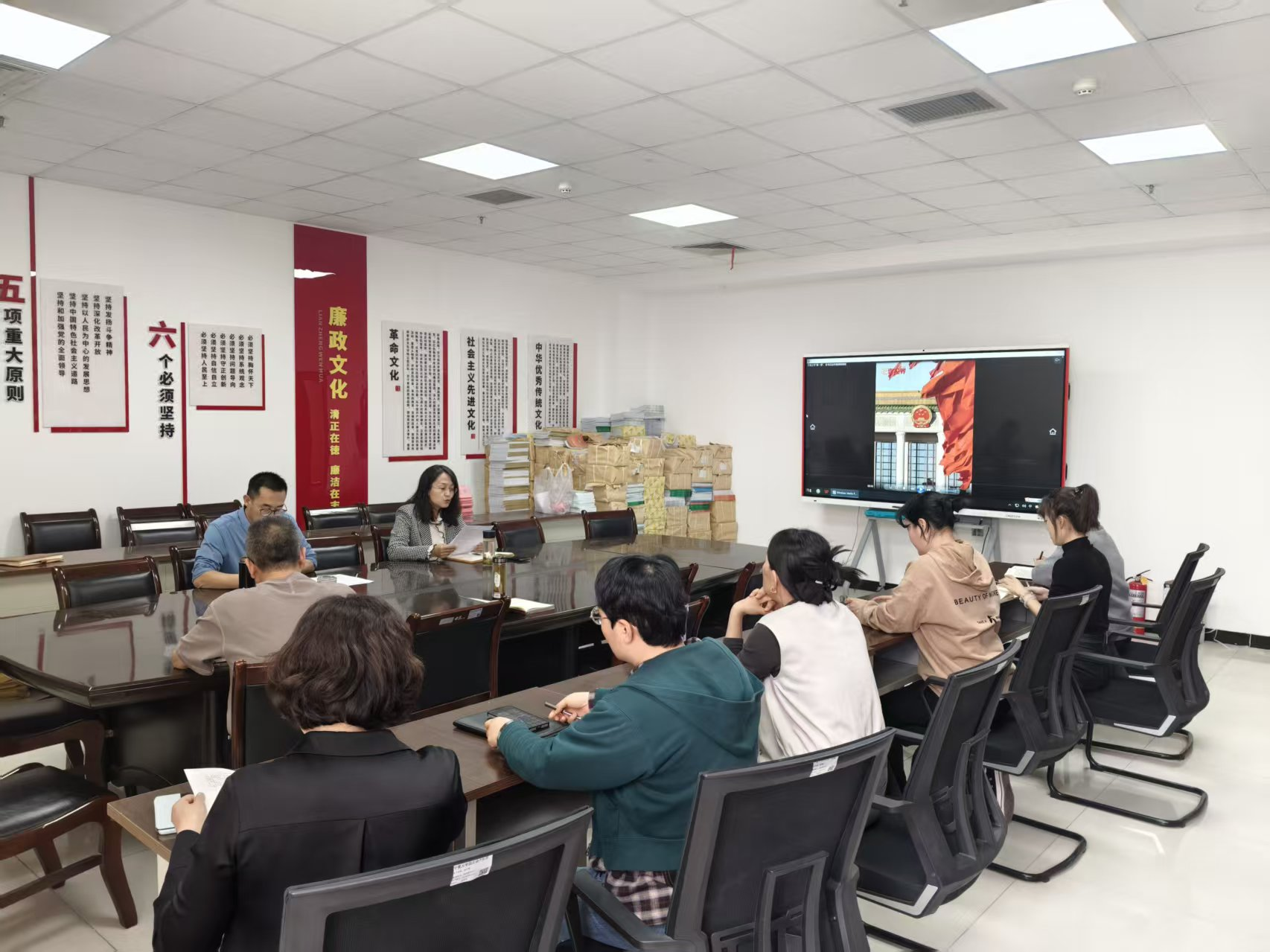 为深入学习贯彻党的二十届四中全会精神,扎实推进树立和践行正确政绩观学习教育,引导全体党员干部强化使命担当、凝聚奋进力量,4月22日,学术期刊中心直属党支部召开专题学习会,组织全体教职工集中学习了《求是》杂志发表的习近平总书记重要文章《学习好贯彻好党的二十届四中全会精神》和《让愿担当、敢担当、善担当蔚然成风》,并集中观看了人民网微视频《开局之年“第一课”,总书记这样强调政绩观》。